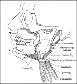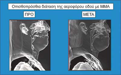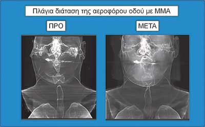 Εποµένως, για την οριστική χειρουργική αντιµετώπιση του ΣΑΑΥ µε σκοπό την ίαση, η επέµβαση που ενδείκνυται είναι η αµφιγναθική προώθηση του γναθοπροσωπικού συµπλέγµατος (Maxillo Mandibular Advancement – MMA – Εικόνα 3).