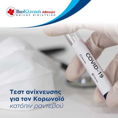 Σε ειδικά διαμορφωμένο χώρο, κατόπιν ραντεβού. Στη Βιοκλινική Αθηνών και στη Βιοκλινική Θεσσαλονίκης πραγματοποιείται πλήρης διαγνωστικός έλεγχος έναντι του κορωνοϊού. Διενεργείται μοριακό τεστ ανίχνευσης του κορωνοϊού (PCR τεστ), [...]