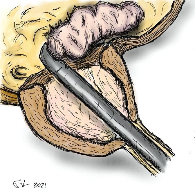 - αν υπάρχει μεγάλος μέσος λοβός αφαιρείται πρώτα και ακολουθεί η εκπυρήνιση των πλάγιων λοβών του προστάτη