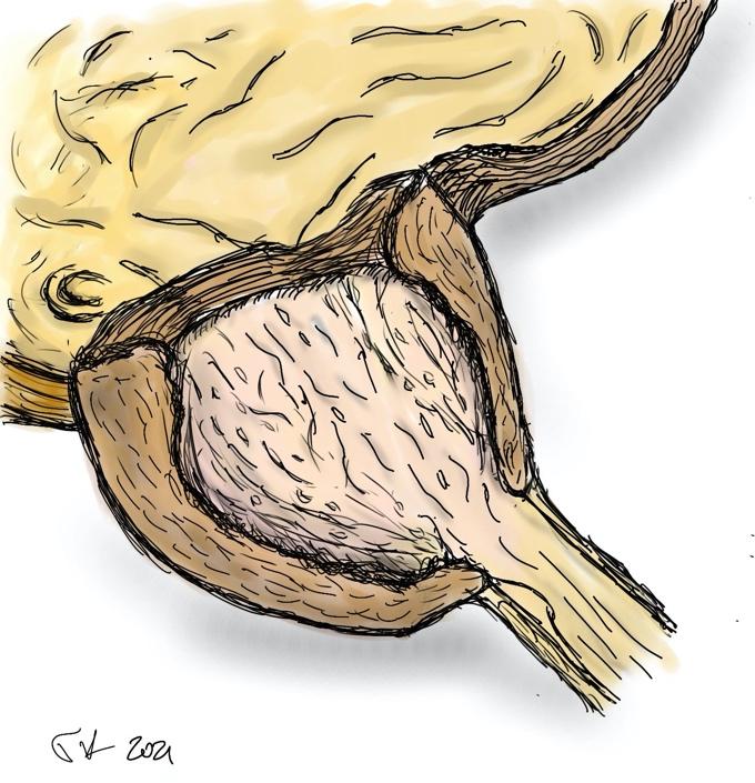 - το αδένωμα έχει αφαιρεθεί από την κύστη και η προστατική κοίτη είναι ανοικτή (εικόνα 10)