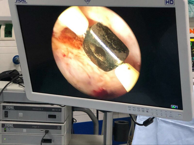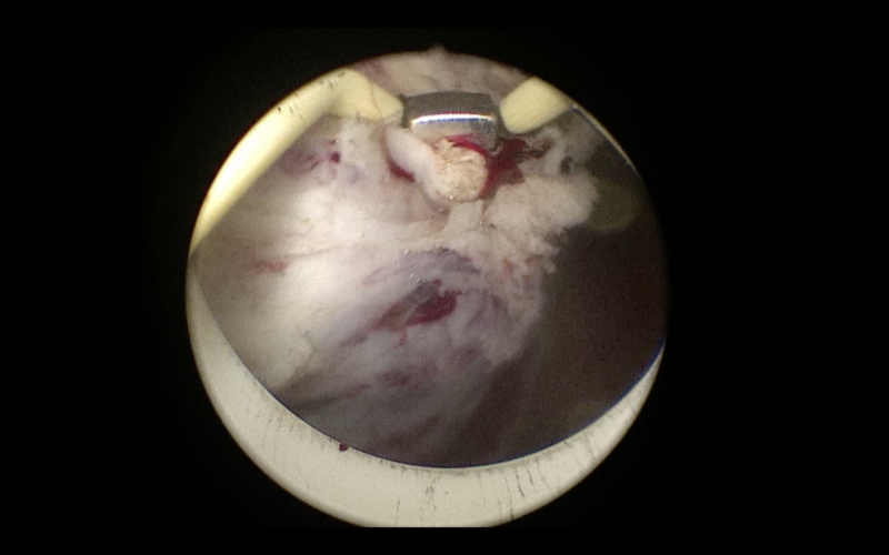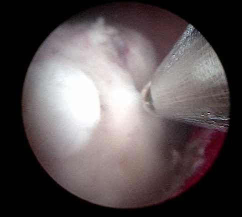 - το αδένωμα τεμαχίζεται και αφαιρείται με τη βοήθεια του morcellator το οποίο εισάγεται μέσα από τον αυλό του ενδοσκοπίου (εικόνες 7-9)