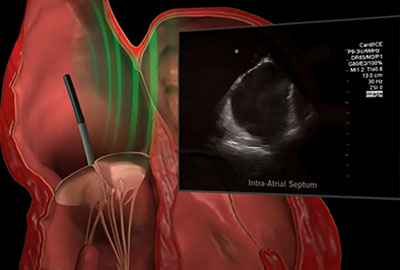 Με τη χρήση ενός λεπτού καθετήρα που εισάγεται στο εσωτερικό της καρδιάς κατά τη διάρκεια της επέμβασης, μπορούμε να απεικονίζουμε με υπερήχους τις καρδιακές δομές με μεγάλη λεπτομέρεια. Έτσι διευκολύνεται η διενέργεια της επέμβασης και ειδικά η μετάβαση στον αριστερό κόλπο που απαιτεί την παρακέντηση μιας λεπτής μεμβράνης, του ωοειδούς τρήματος, που χωρίζει τον δεξιό από τον αριστερό κόλπο της καρδιάς. Βλέποντας σε πραγματικό χρόνο την καρδιακή ανατομία μπορούμε να έχουμε πληρέστερη επίβλεψη καθ’ όλη τη διάρκεια της επέμβασης αποτρέποντας πιθανές επιπλοκές και κινδύνους.