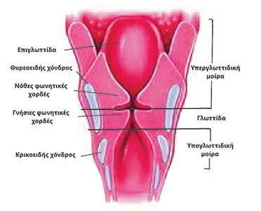 Ο λάρυγγας ανατοµικά χωρίζεται σε τρία επίπεδα, το γλωττιδικό, το υπεργλωττιδικό και το υπογλωττιδικό, όπως φαίνεται στο παρακάτω σχήµα.
