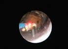 Εκεί ερευνούνται όλοι οι χώροι του νεφρού και εντοπίζεται ο λίθος. Στις εικόνες φαίνεται το ενδοσκόπιο που ονομάζεται εύκαμπτο ουρητηροσκόπιο να επιθεωρεί το κάθε διαμέρισμα του νεφρού
