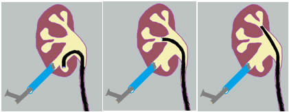 Εδώ δημιουργείται ένας δρόμος από το δέρμα προς το νεφρό του ασθενούς ενώ ταυτόχρονα ένα άλλο ενδοσκόπιο ανέρχεται από την κύστη προς τον νεφρό.